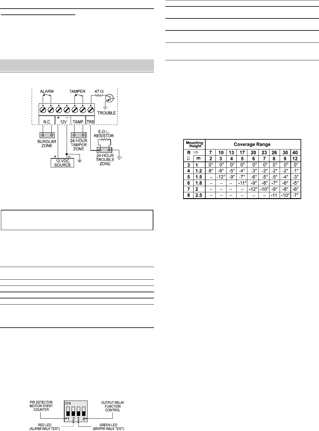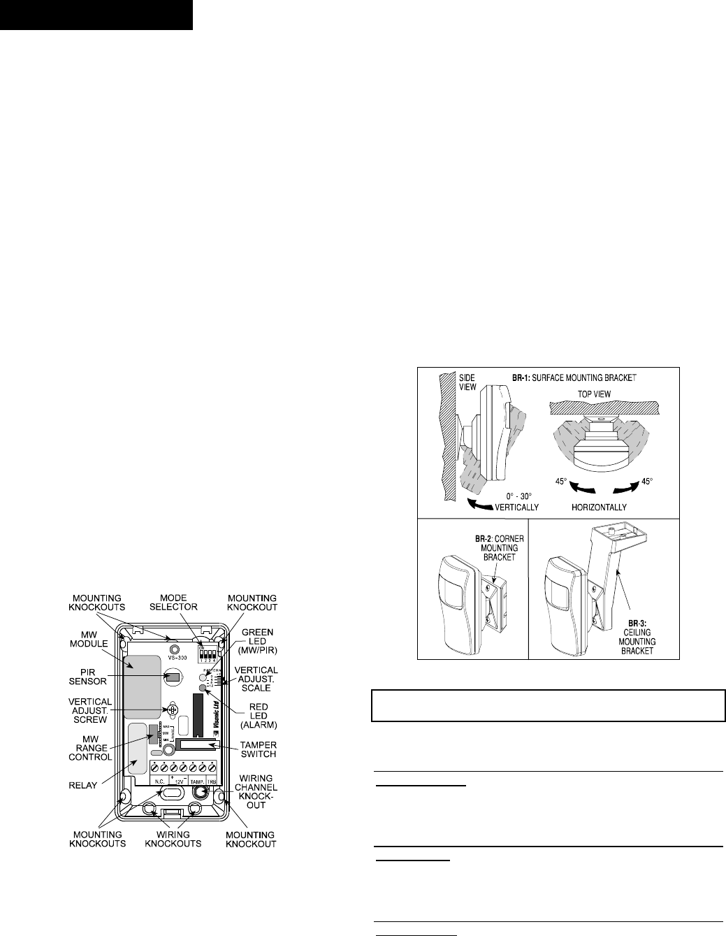 ATTENTION! Detection occurs only in areas in which the MW and PIR patterns overlap