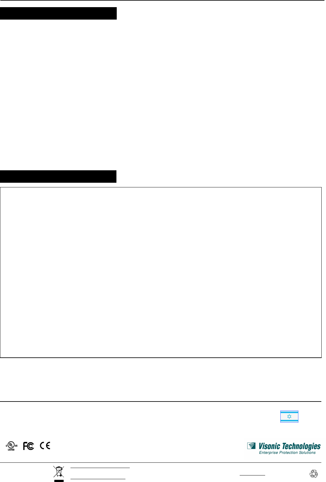 Visonic UK * Bedford MK44 3WH. England * Tel: +44-870-730-0840 * vtuk_marketing@visonictech.com