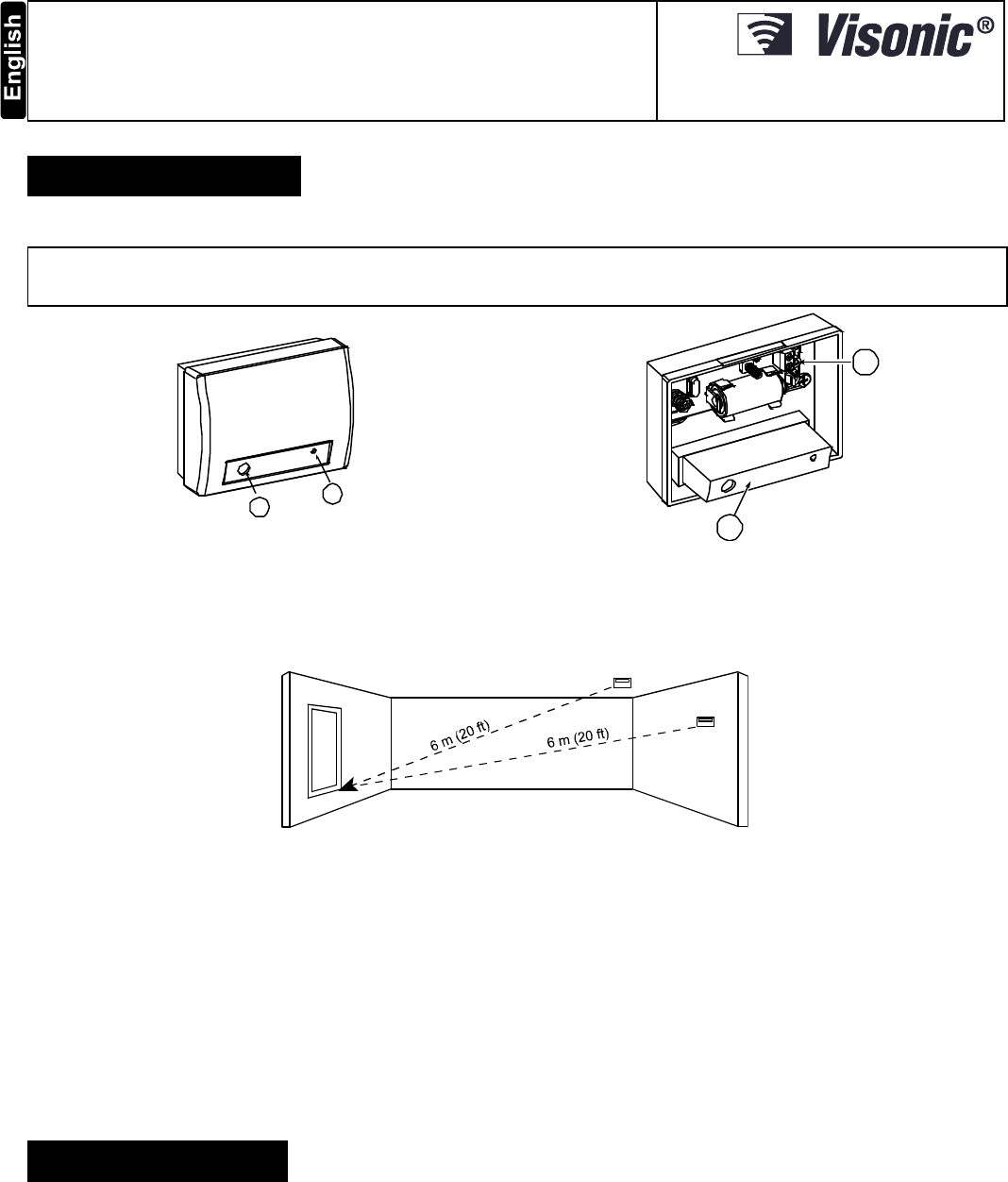 etc.). The sensor must always be in direct line of sight of all protected windows. It cannot consistently detect glass breaking around corners, in
