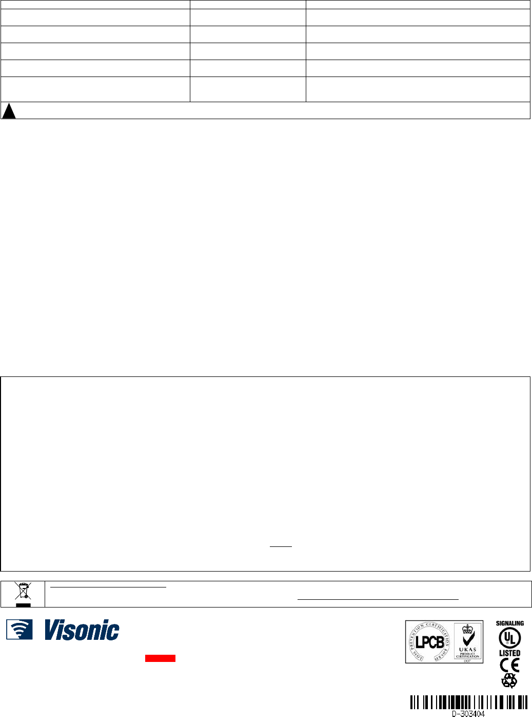 ! Warning! Changes or modifications to this equipment not expressly approved by Visonic Ltd. could void the user’s authority to operate the