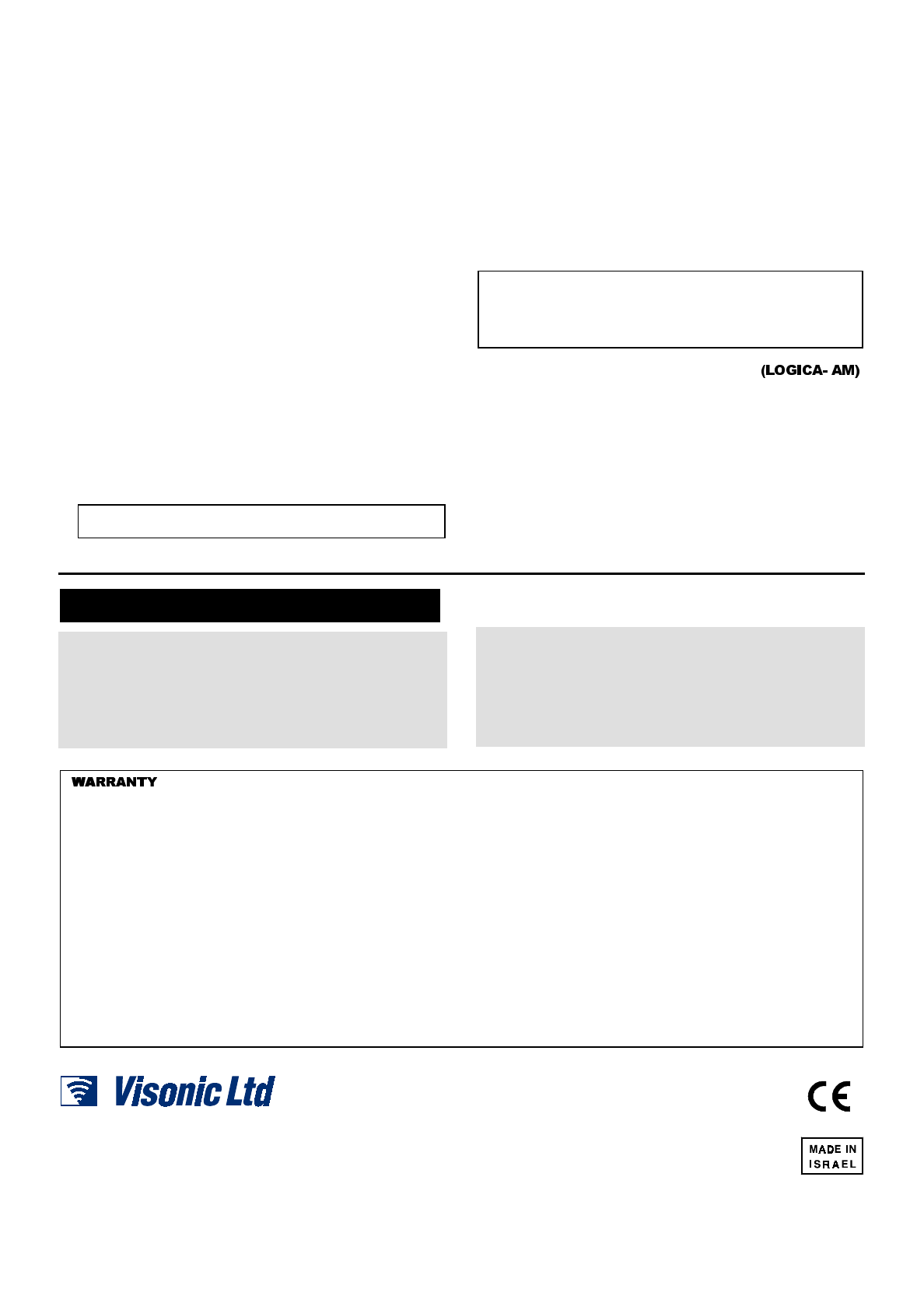 VISONIC LTD. (ISRAEL): P.O.B 22020 TEL-AVIV 61220 ISRAEL. PHONE: (972-3) 645-6789, FAX: (972-3) 645-6788