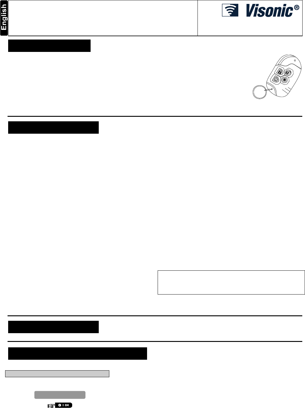 Visonic Ltd. Wireless 2-way keyfob User manual 20684 rev1