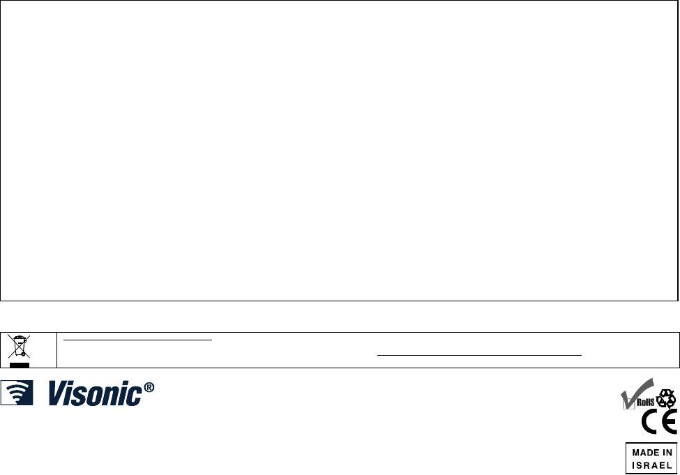 VISONIC GmbH (D-A-CH): KIRCHFELDSTR. 118, D-40215 DÜSSELDORF, TEL.: +49 (0)211 600696-0, FAX: +49 (0)211 600696-19
