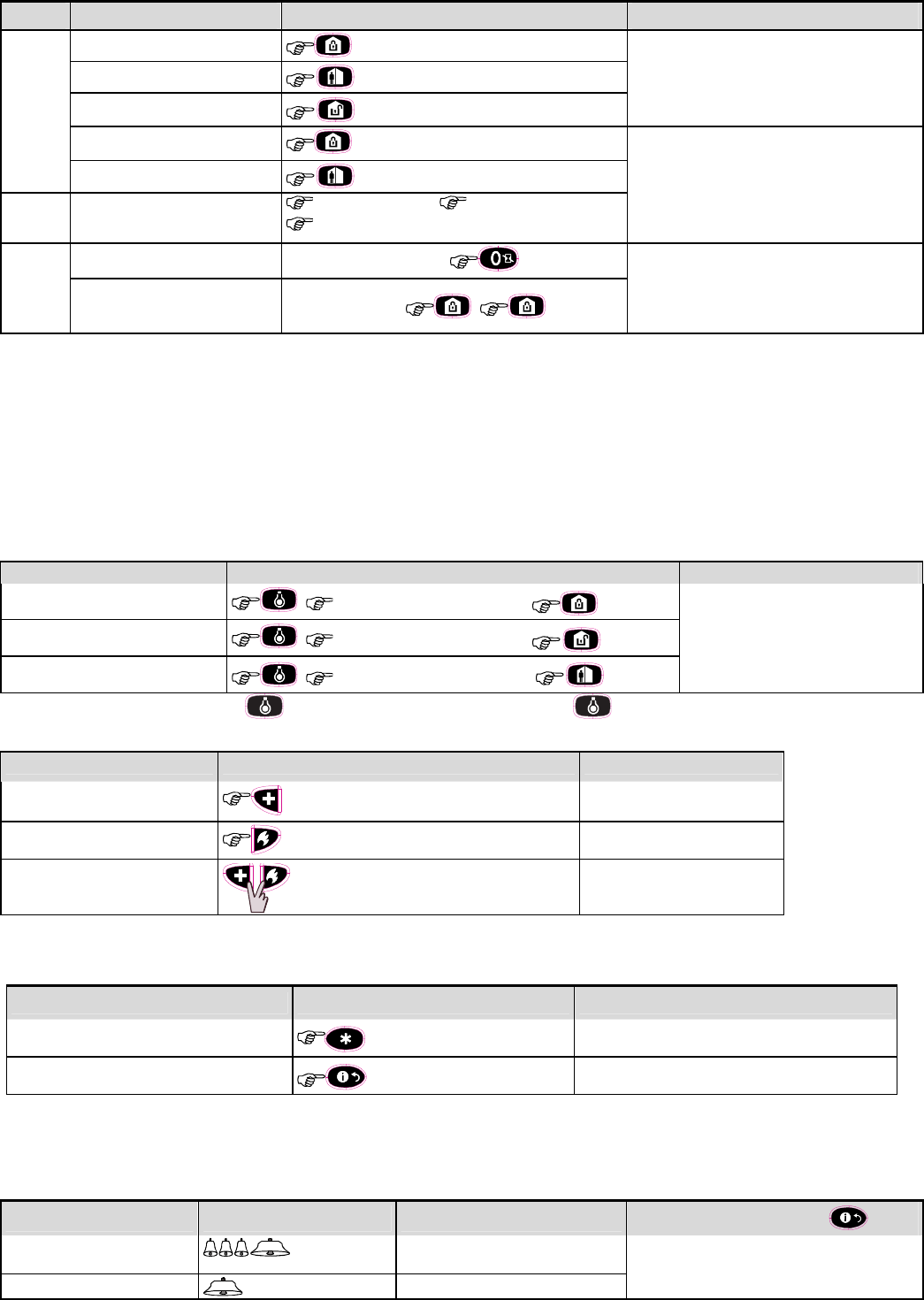 The system Arming Status is indicated via the respective arming/disarming buttons' LED that light for several seconds. For example, if the system is