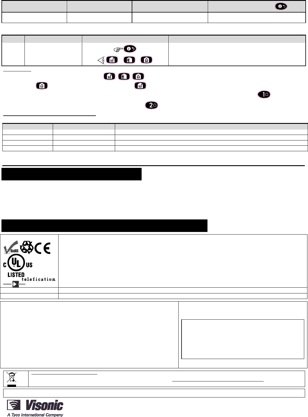 Note: For UL Listed product, the proximity feature may only be used to arm or