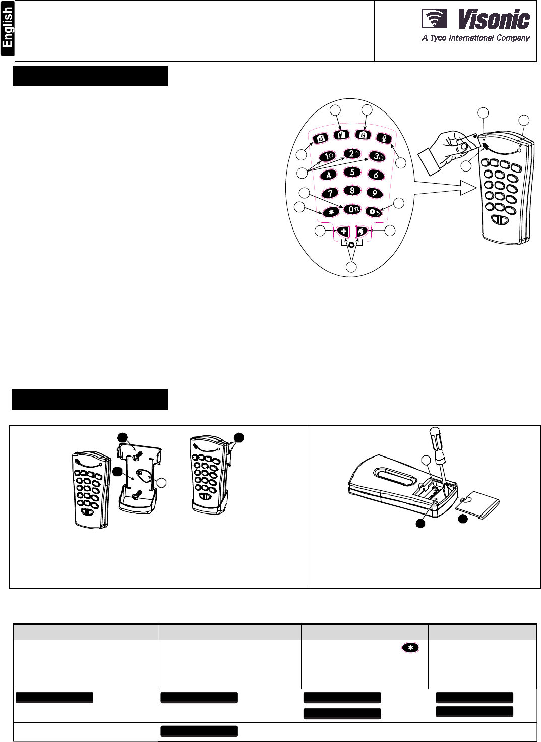 Yellow blinking Keypad Low-Battery The battery of the keypad must be replaced as shown in section 2.1.