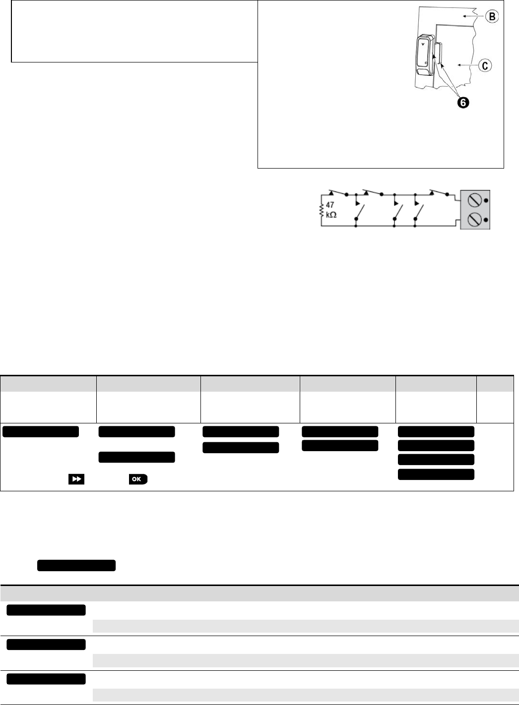 Normally Closed (N.C.) sensor contacts can be used, as shown in Figure 4. A 47k E.O.L. resistor must be wired at the far end of the