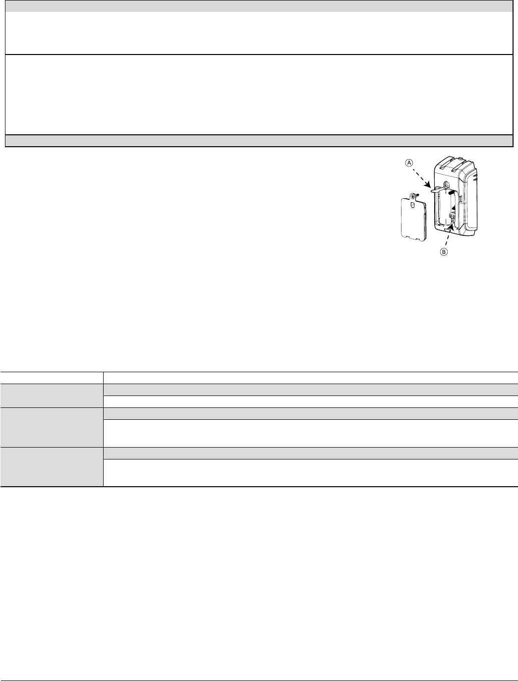 Note: Once the battery cover is removed, a tamper message is transmitted to the panel. Subsequent removal of the battery prevents transmission of