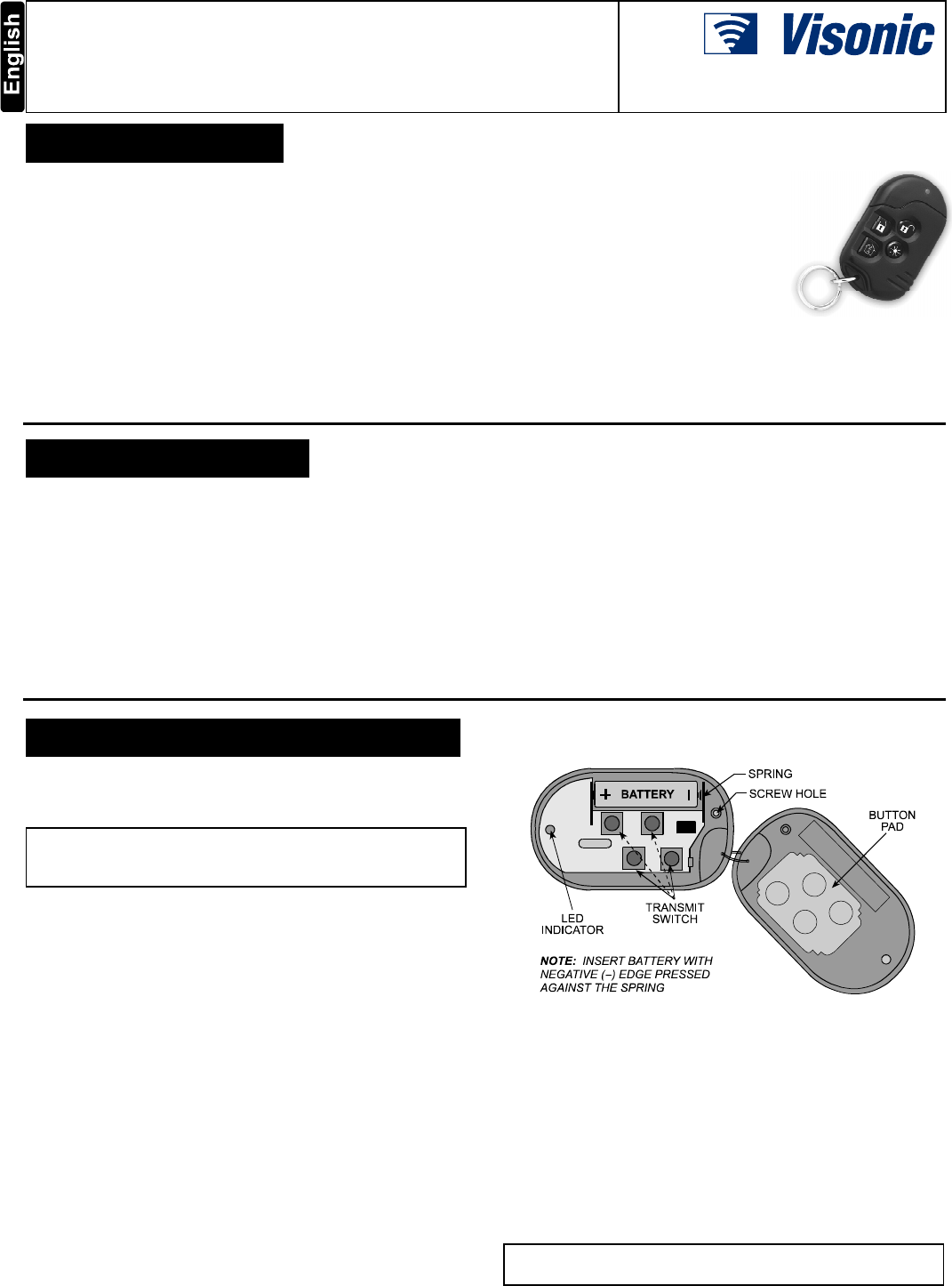 Visonic MCT234 Keyfob Transmitter User Manual DE2380 5 w2002