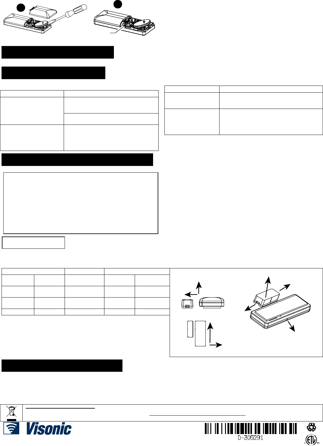 Visonic MCT340SMA WIRELESS CONTACT SENSOR User Manual D 305291 MCT 340 SMA Installation Instructions