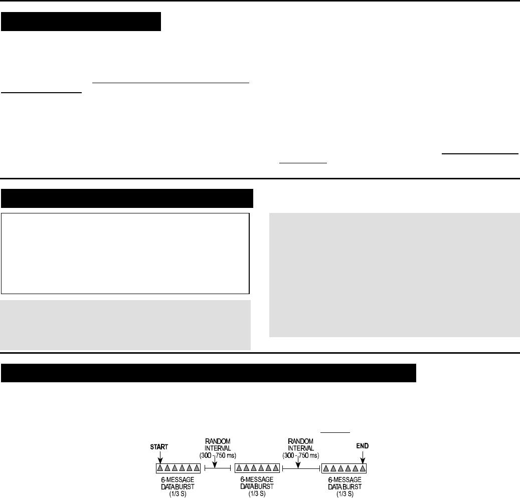 PowerCode transmitters transmit 3 data bursts at random intervals, with 6 repetitions of the same message in each burst (Fig. A1). This
