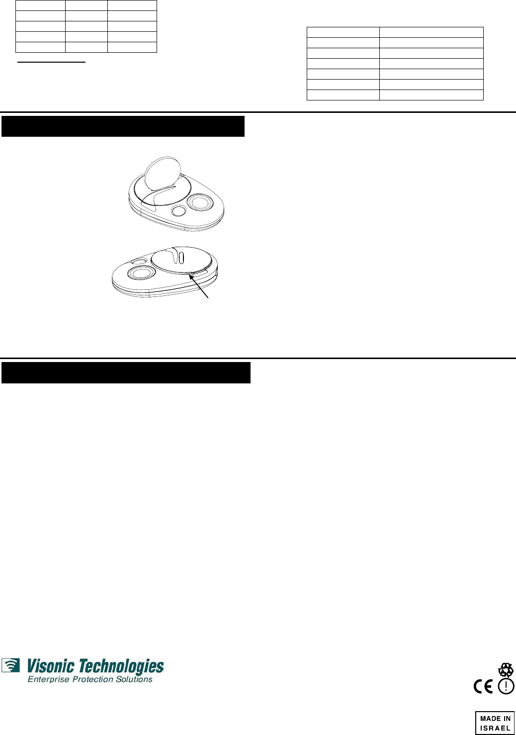 VISONIC TECHNOLOGIES. (ISRAEL): 30 Habarzel St. Tel Aviv 69710 ISRAEL Tel 972-3-7681400 Fax: 972-3-7681415 E-MAIL: support@visonictech.com