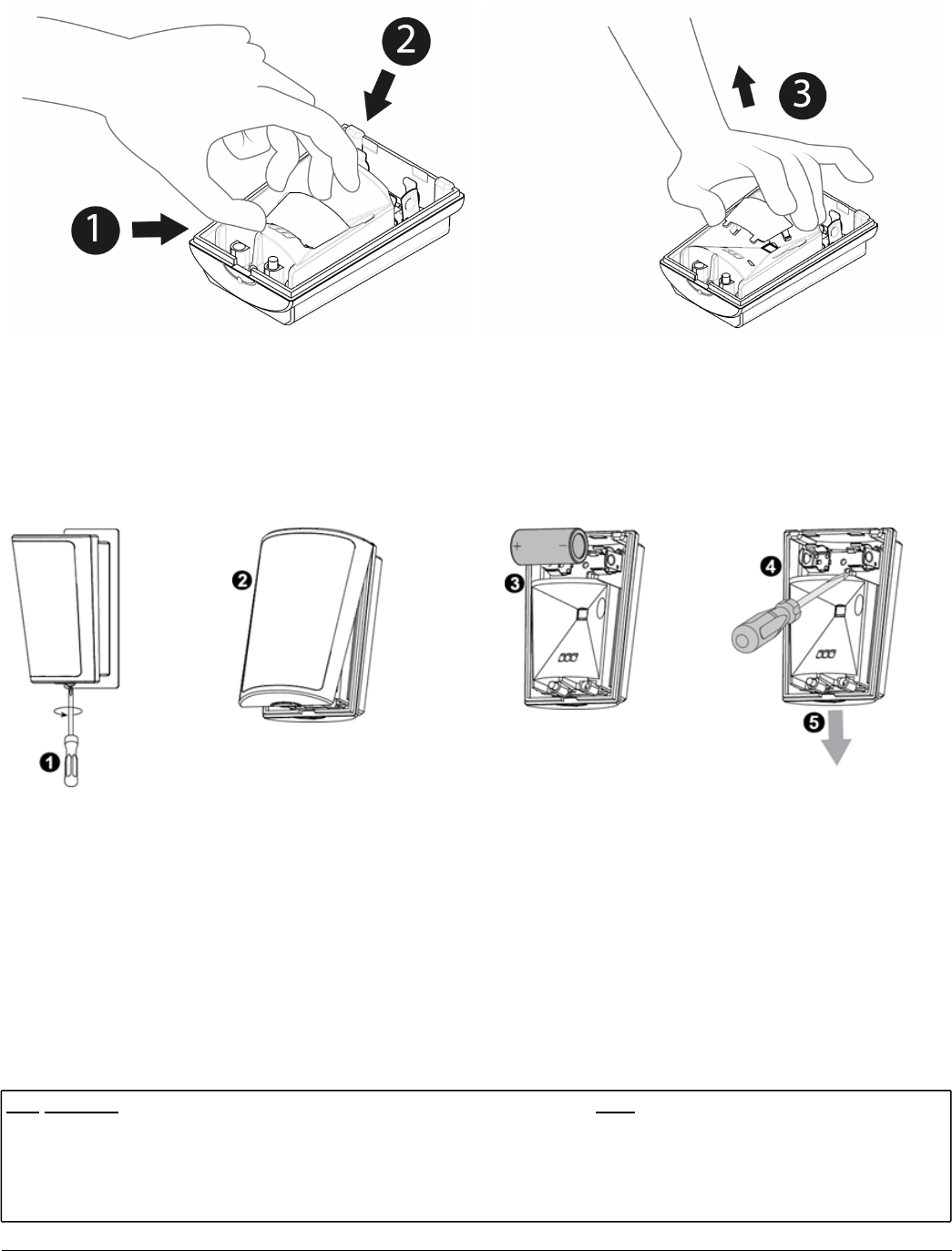 Note: The detector transmits a low battery signal upon detection of low voltage. It is recommended to wait about 1 minute after battery removal, before