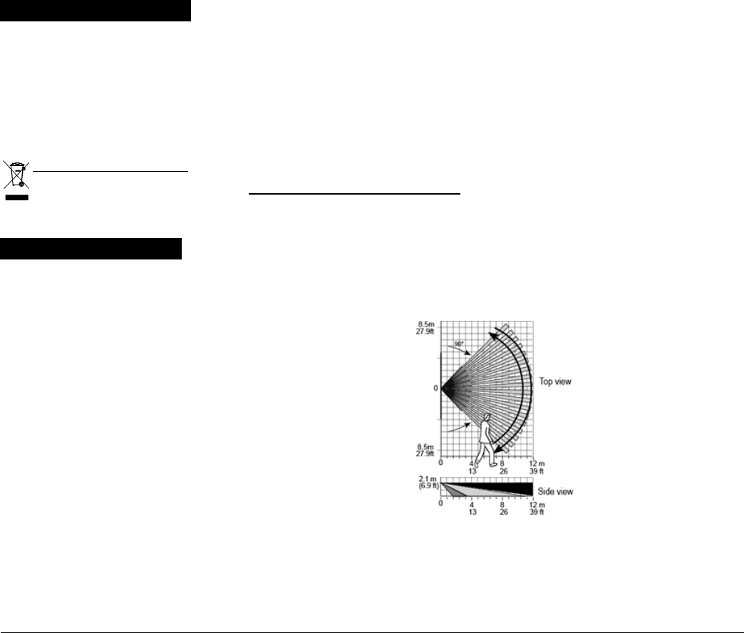 ft.) and at height 2.4 m (8 ft.) for a detection distance in a room between 9 – 12 m (29.5 – 39 ft.)