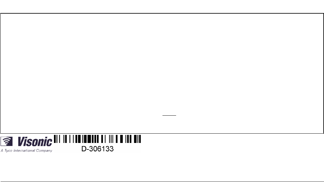 © VISONIC LTD. 2016 MP-802 K9-85 PG2 D-306133 (Rev.1 8/16)