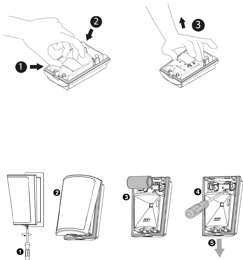 Note: Upon battery insertion or closing the cover (which results in closing the tamper switch)