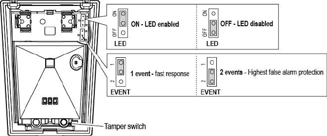 • An on-board motion event jumper determines whether 1 or 2 consecutive motion events trigger an