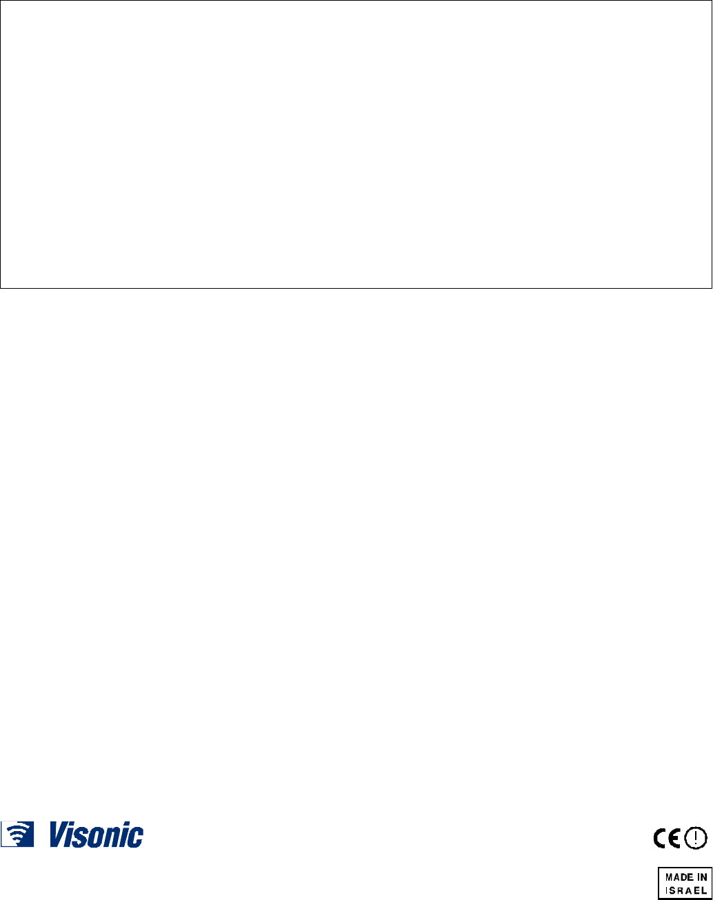 VISONIC LTD. (ISRAEL): P.O.B 22020 TEL-AVIV 61220 ISRAEL. PHONE: (972-3) 645-6789, FAX: (972-3) 645-6788