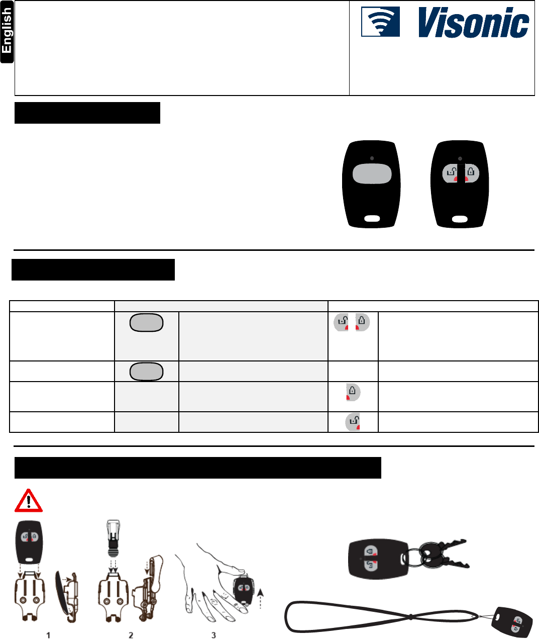 Visonic Ltd. Panic button keyfob D 304457 PB 101 102 User s Guide