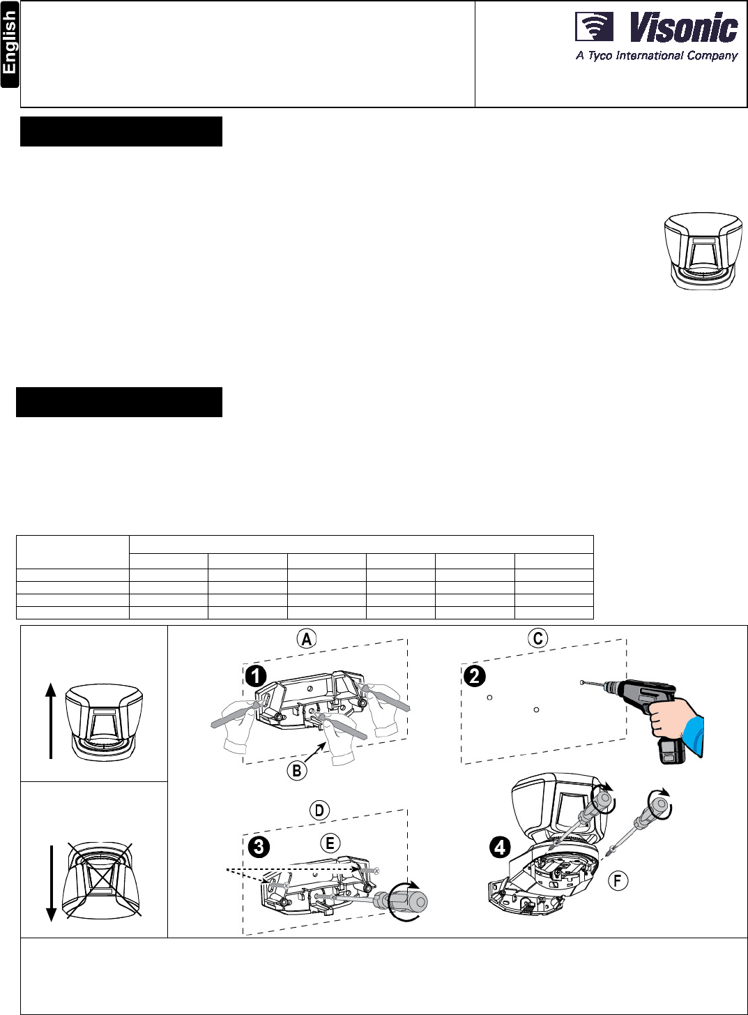 Visonic TOWER20AMPG2 POWERG WIRELESS PIR MOTION MIRROR DETECTOR WITH ANTI-MASKING User Manual D 304046 TOWER 20 PG2 Installation Instructions