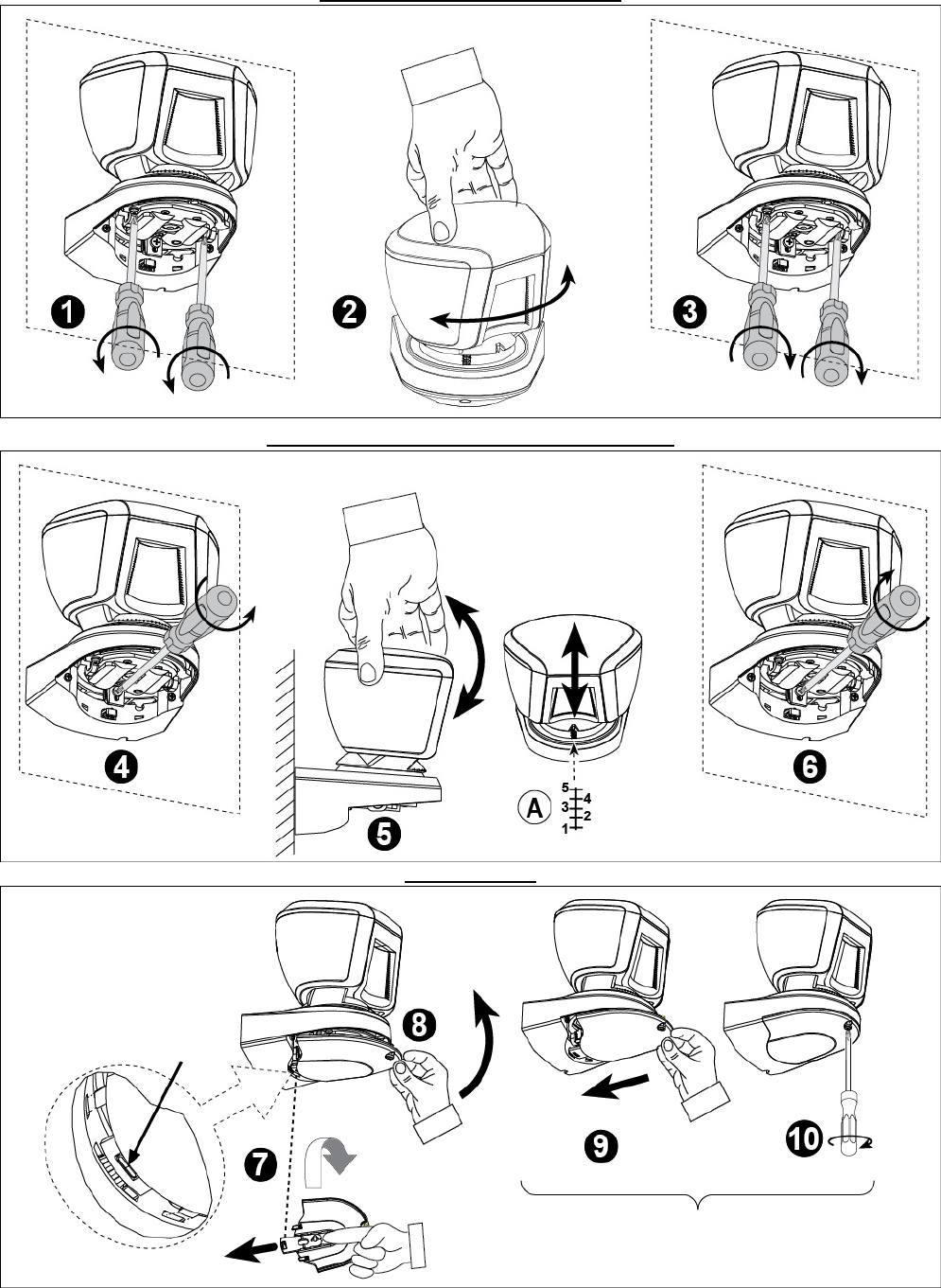 6. Lock 7. Turn cover and push slider 8 & 9. Put back cover 10. Secure with screw