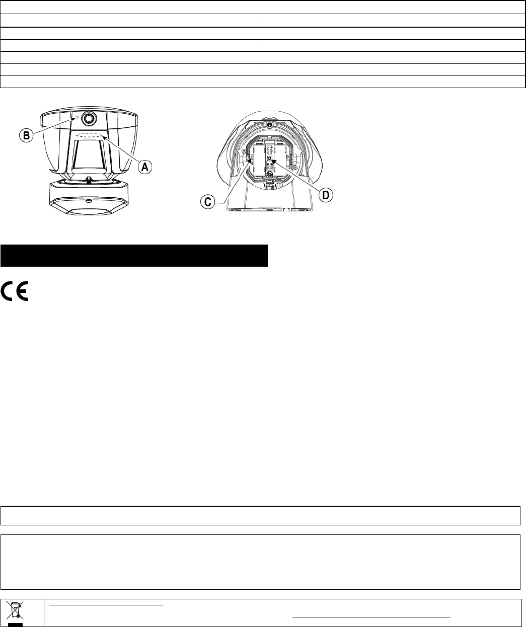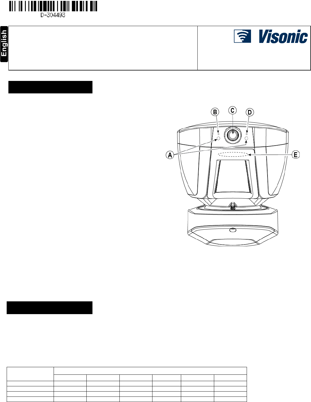 Visonic TOWERCAMPG2 PowerG, Outdoor Mirror PIR Motion Detector User Manual D 304493 TOWER CAM PG2 Installation Instructions