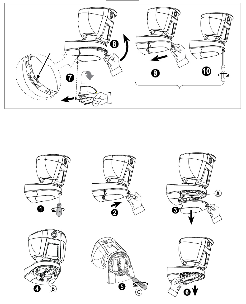 6. Lock 7. Turn cover and push slider 8 & 9. Put back cover 10. Secure with screw