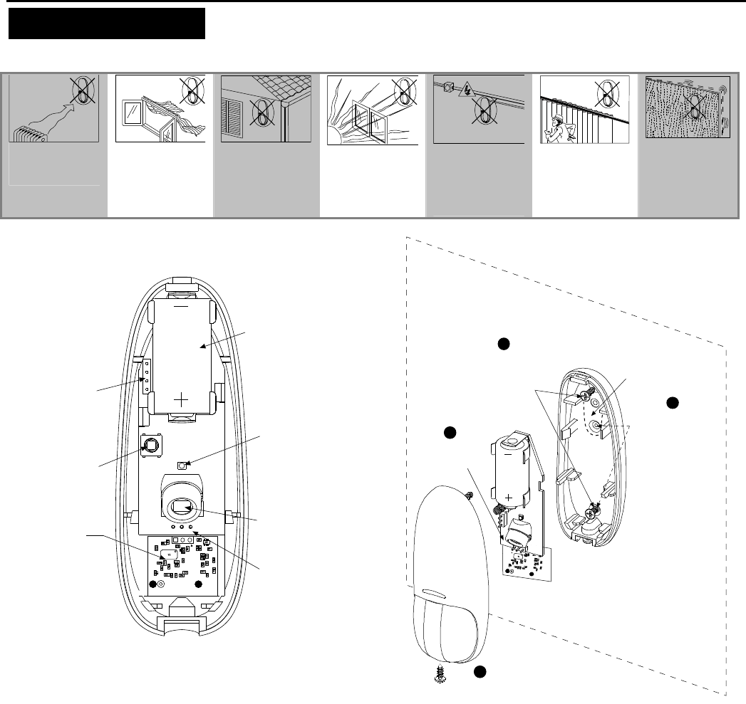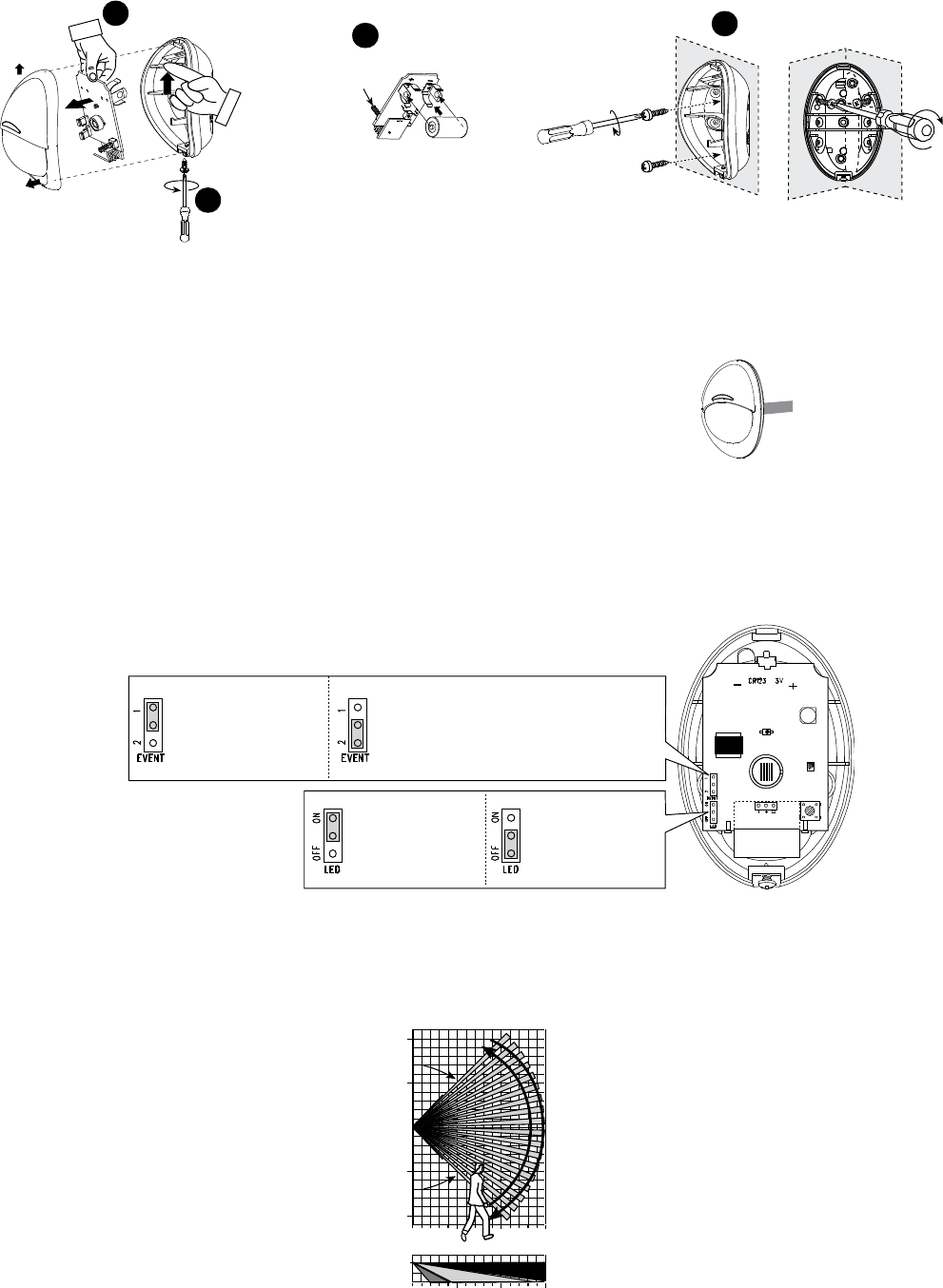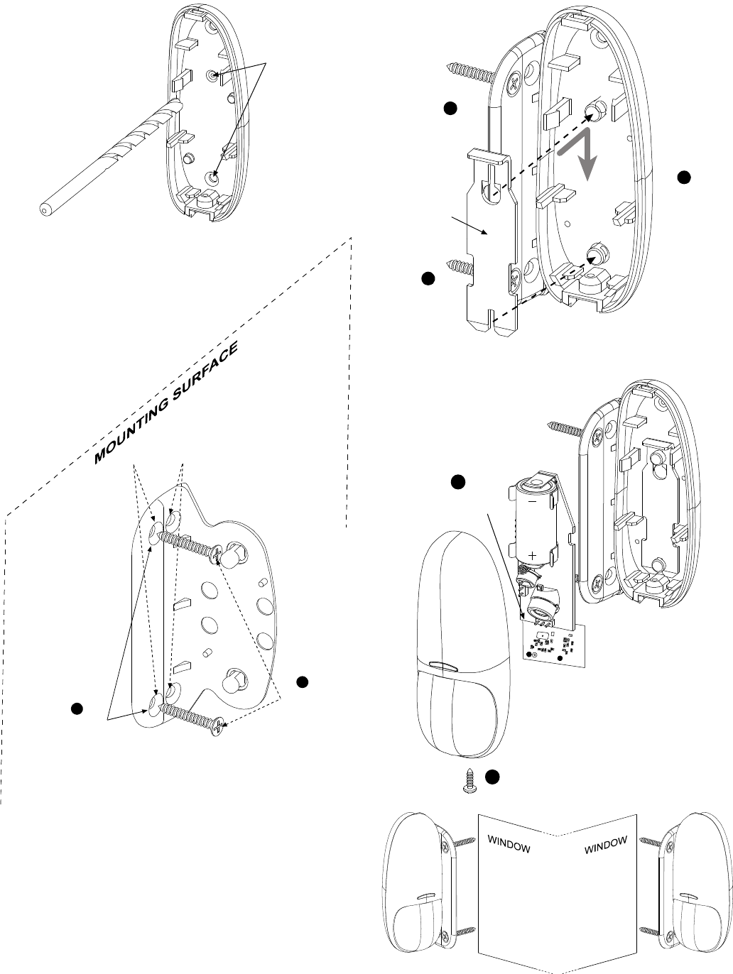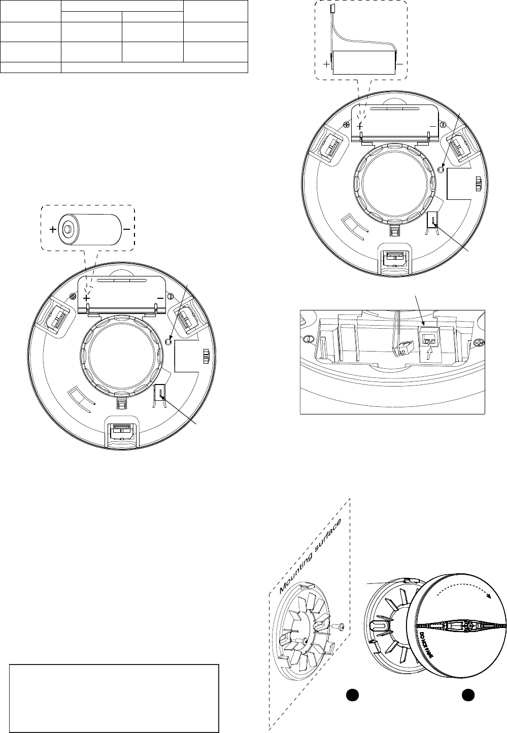 1. For battery installation, see steps 1-3 below. 2. For mounting the detector, see step 4 below.