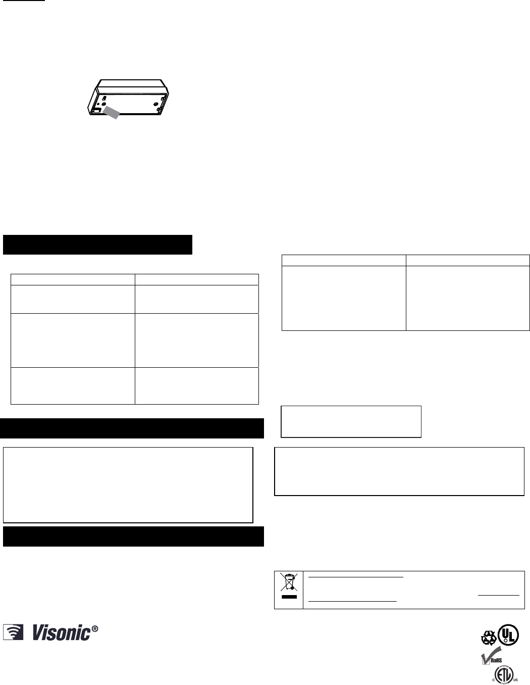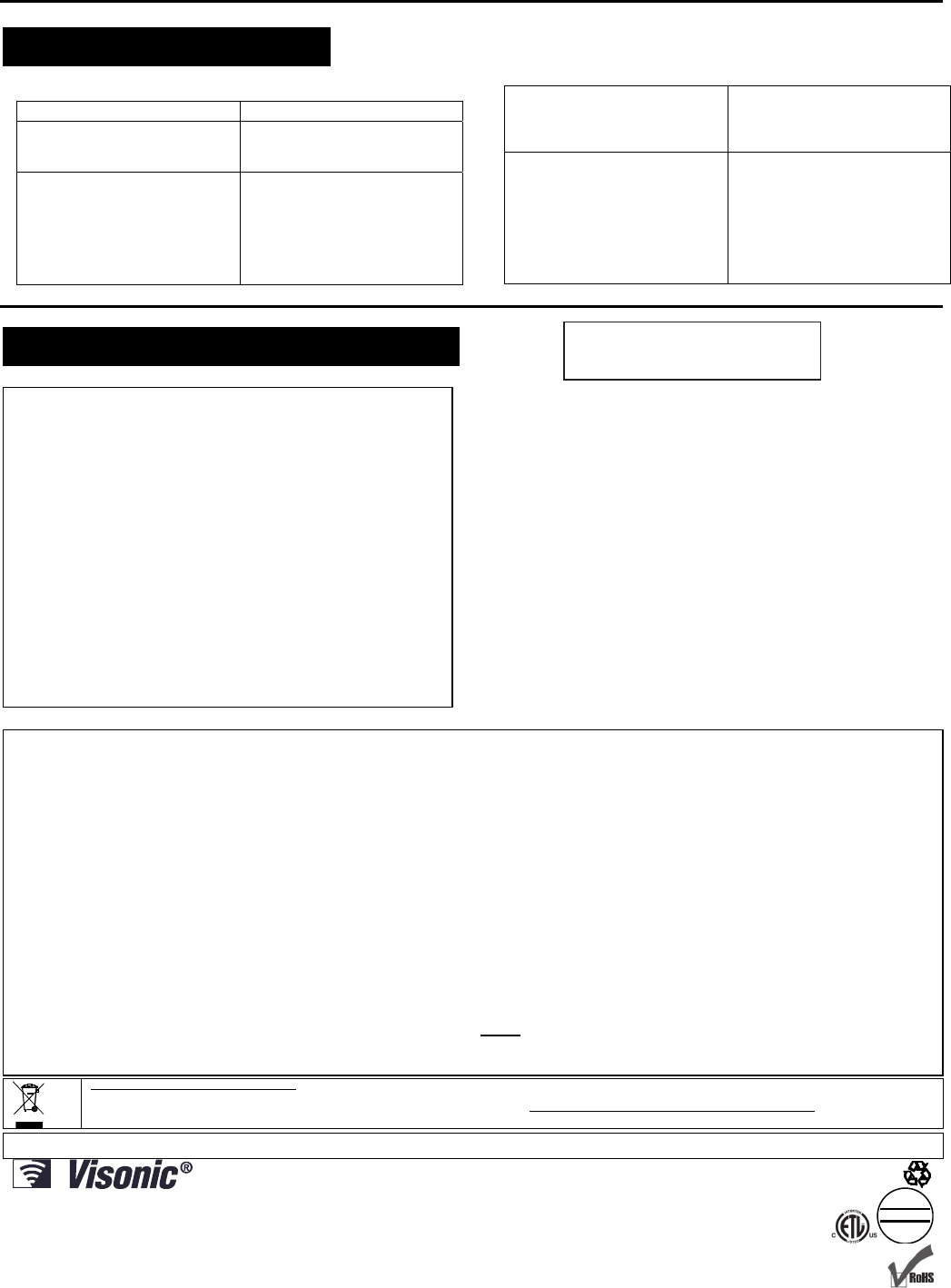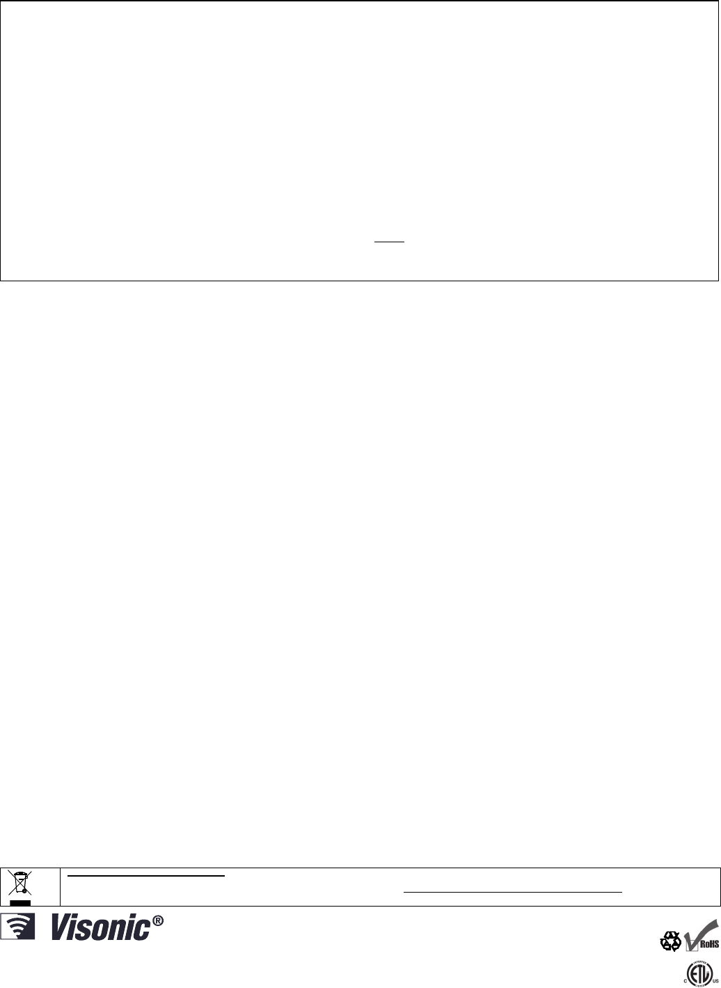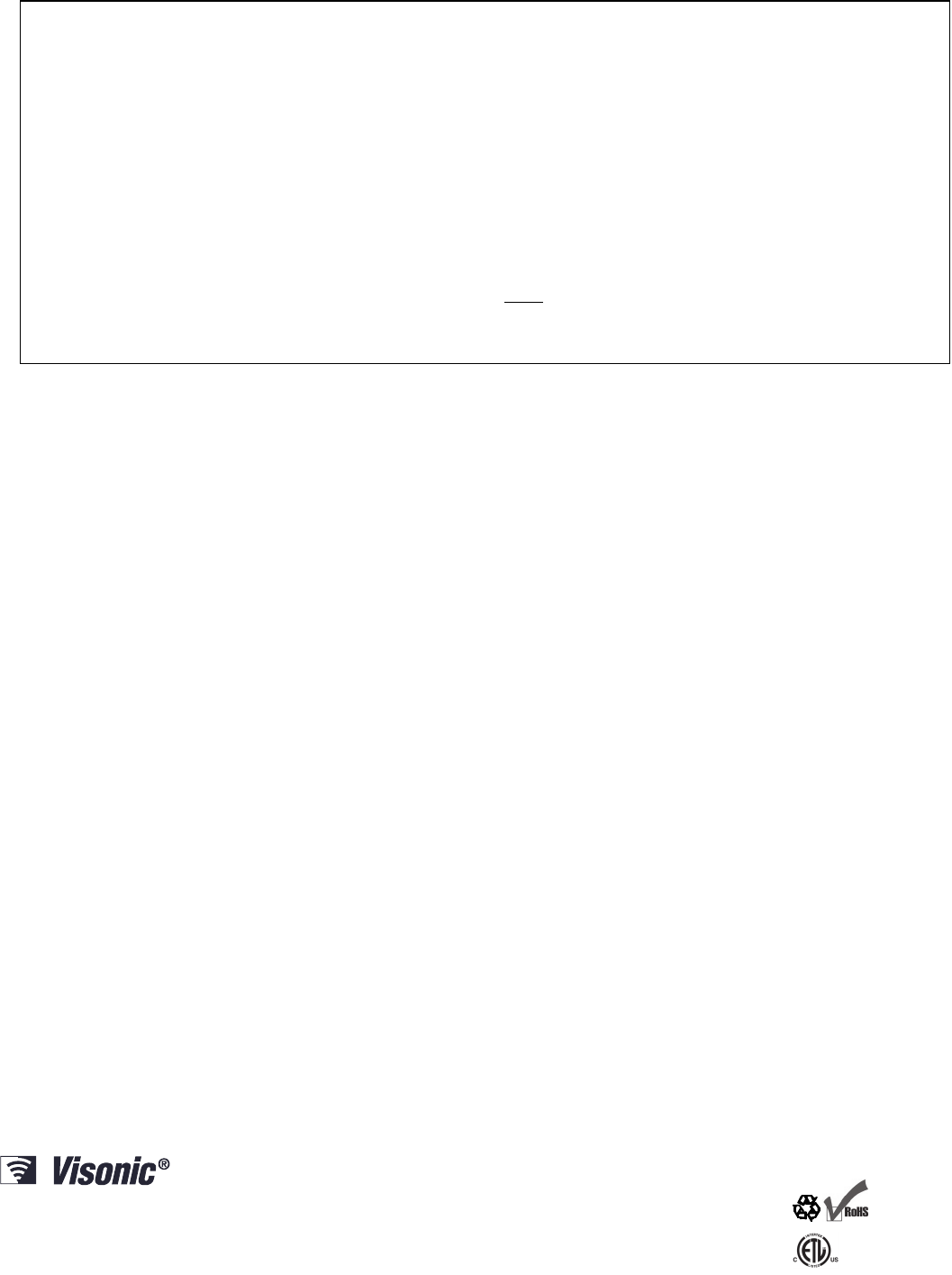 VISONIC LTD. 2011 NEXT PLUS K9-85 SMA D-303361 (Rev 4. 10/11)