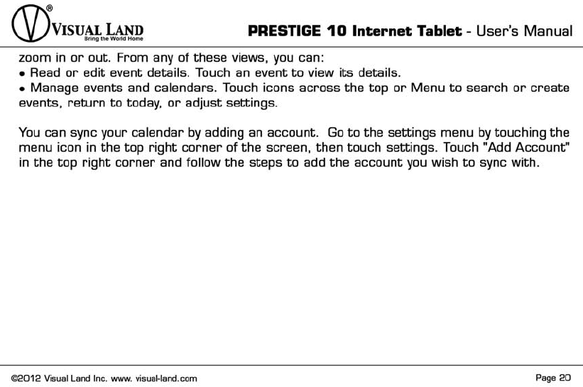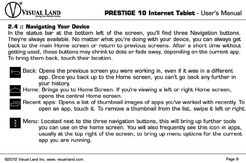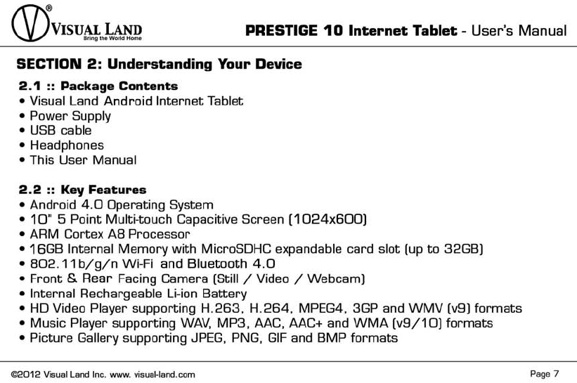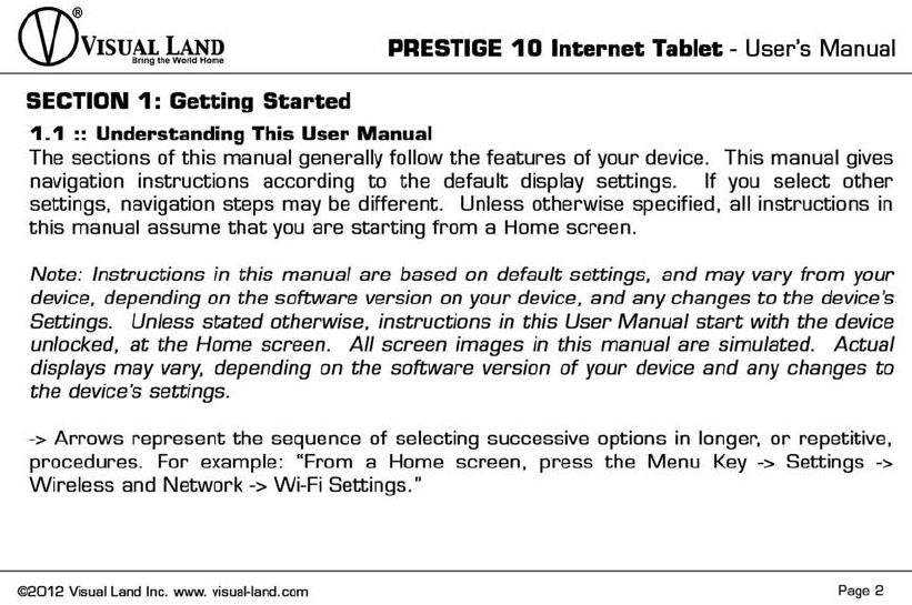 ME-110 - Operating Manual prestige10_ME-110 Free User Guide for Visual Land Tablet and eReader, Manual