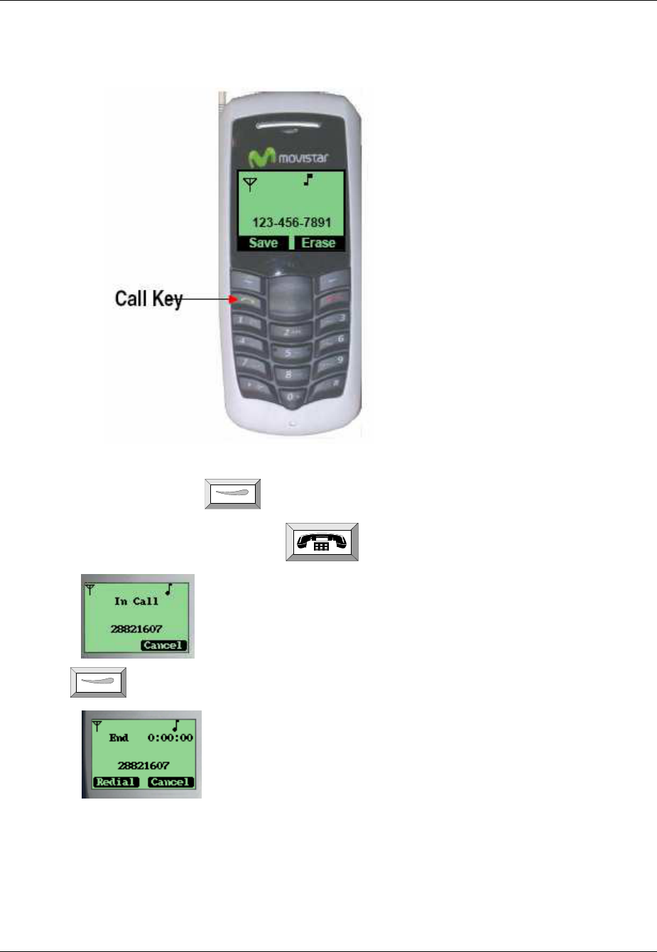 While the test screen is active, you can dial a number and end a call through the keypad. When in a