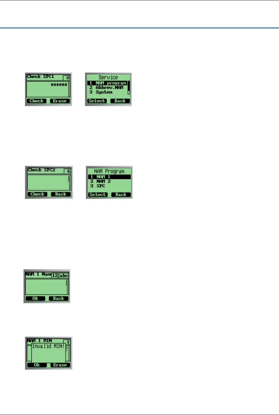 stored in the MIN Lock table. Otherwise the phone will prompt “Invalid MIN!”.