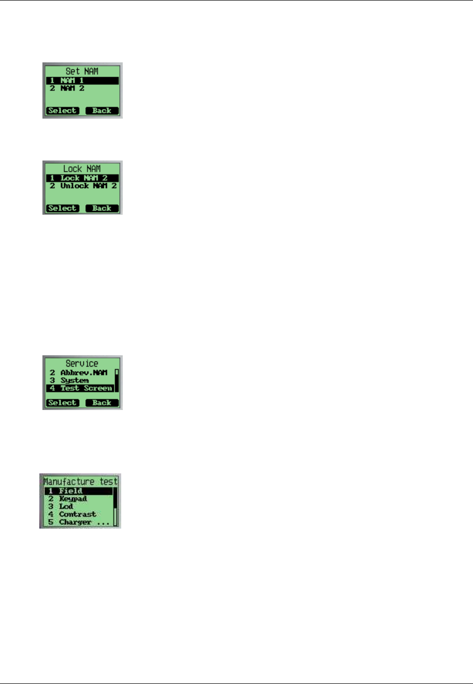 This menu will display some system parameters such as Rx Power, Tx Power, Pilot Pn, EC/IO, etc.