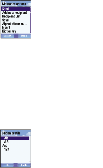 address book. Press the left button to show messages received and press