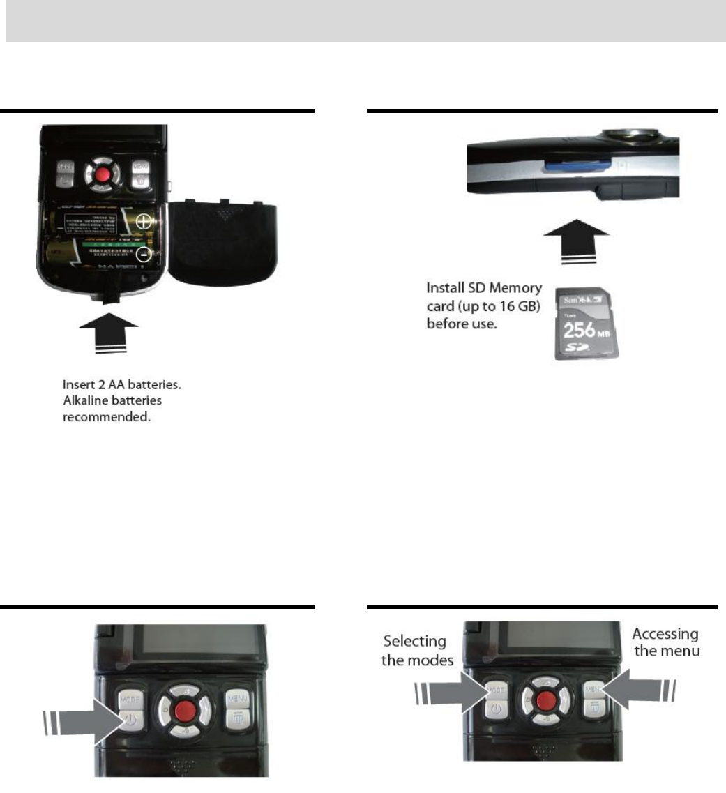 Note: Your camera needs an SD Memory card (up to 16GB) for normal use.