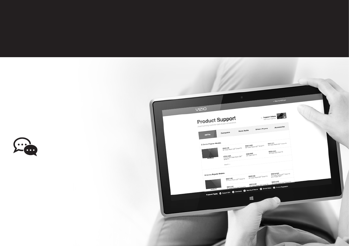 To obtain warranty service, contact VIZIO Technical Support via email: TechSupport@VIZIO.com or via phone at 01