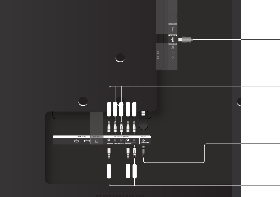 • When connected to a power outlet, power is always flowing into your TV. To totally disconnect power, unplug