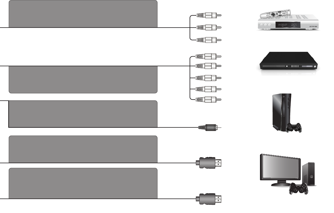 • To reduce the risk of electric shock or component damage, switch off the power before connecting other