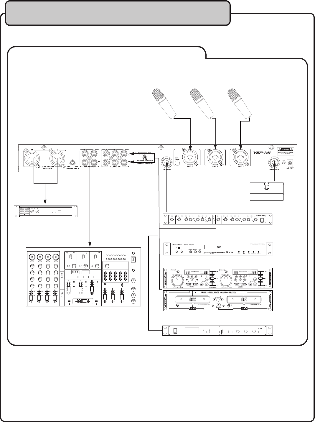 not shown include connecting the VSP-M1 to powered speakers such as PV420s, using the VSP-M1 as a basic