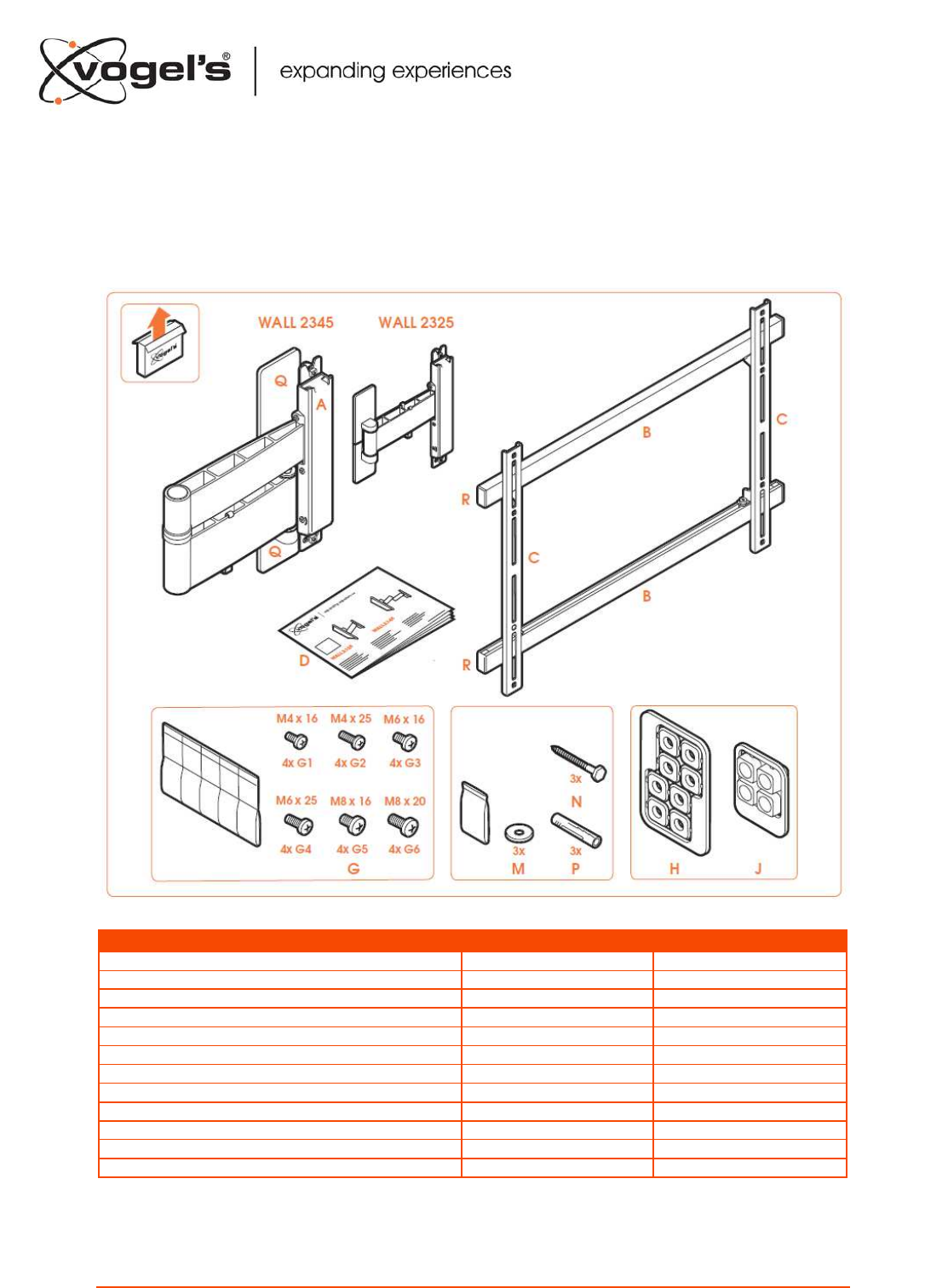Spare Part Overview WALL 2225 2245 2325 2345 2015 WALL2345 WHITE Parts Tv Mount Vogels
