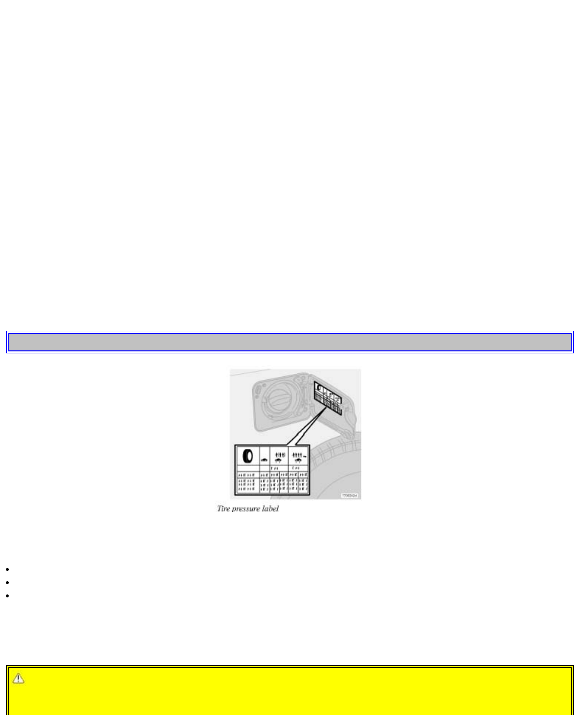 Tire pressure, see label located on the inside of the fuel tank cover.