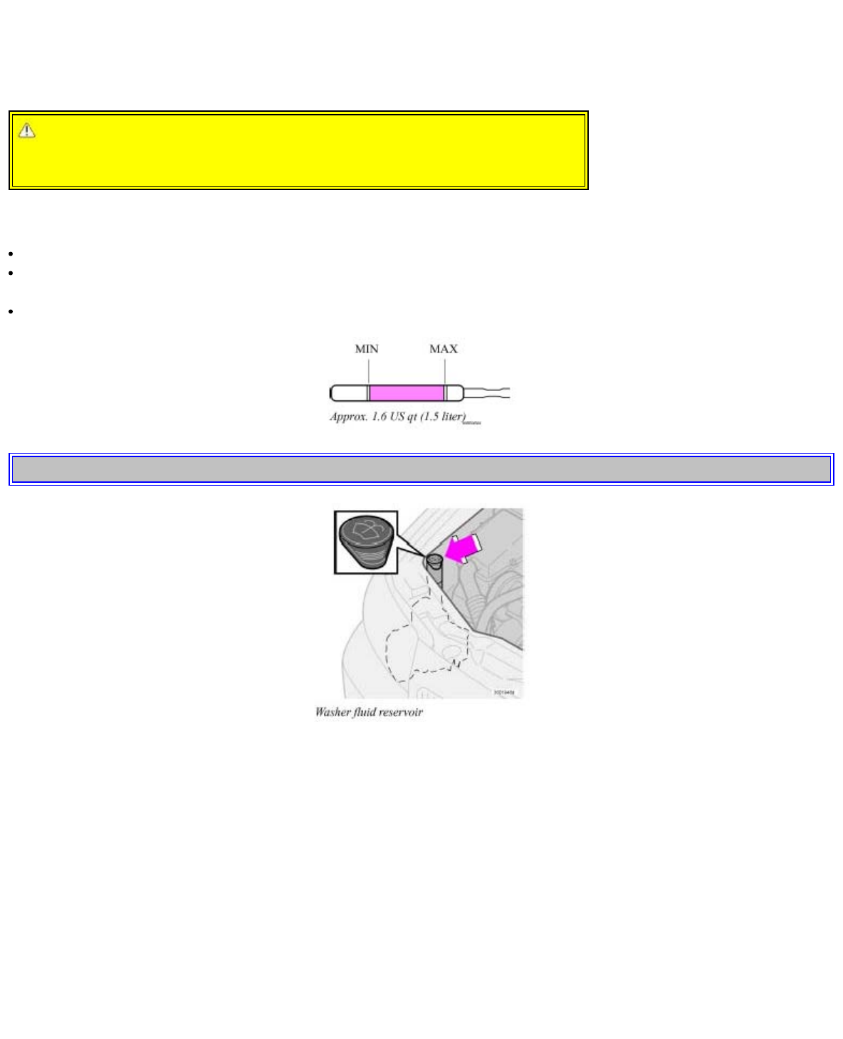 1 Washer fluid reservoir should be filled with water and solvent (wintertime: windshield washer anti-freeze). See page