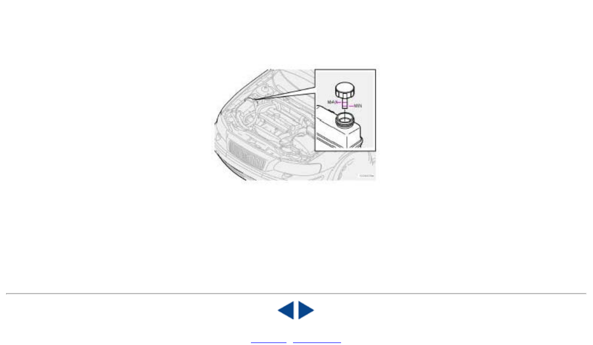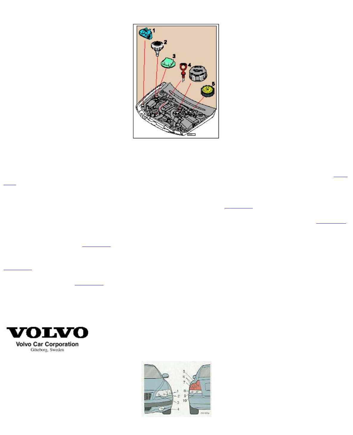 3 Coolant level should be between the expansion tank marks. Mixture: 50% anti-freeze and 50% water. See page 171.