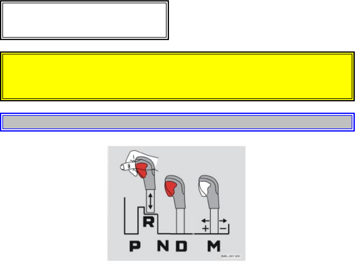 ignition key to position II (or start the engine), depress the brake pedal, press the button on the front side of the gear selector and