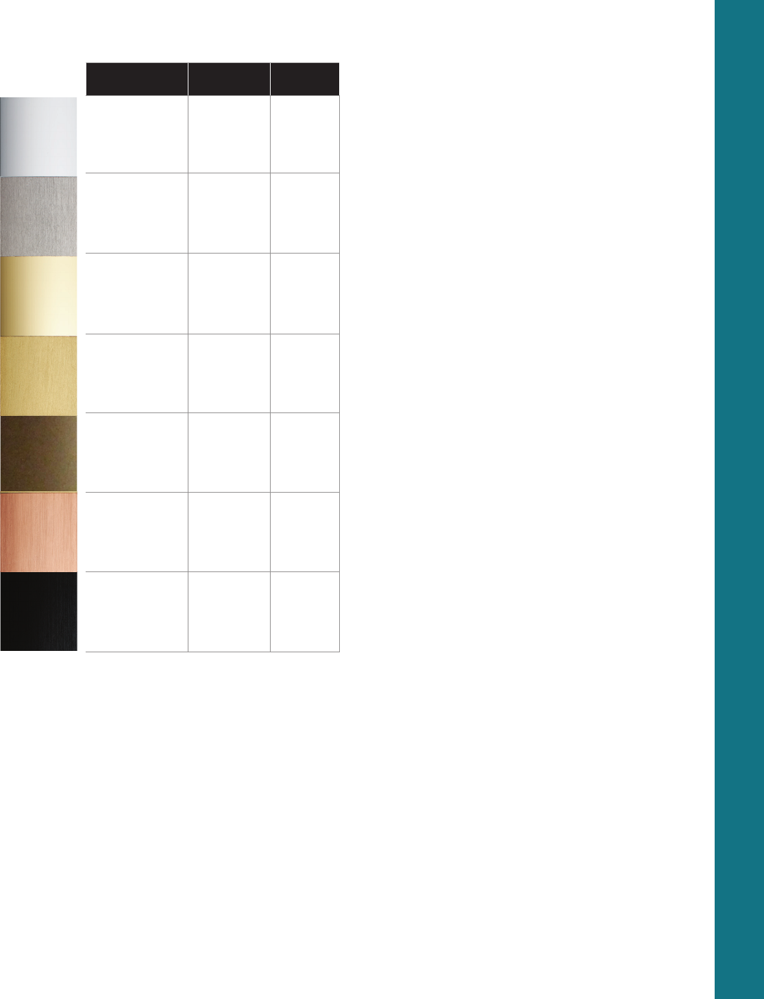 * Note: Durable powder coated finishes available at specific special request. PLEASE CONTACT FACTORY.