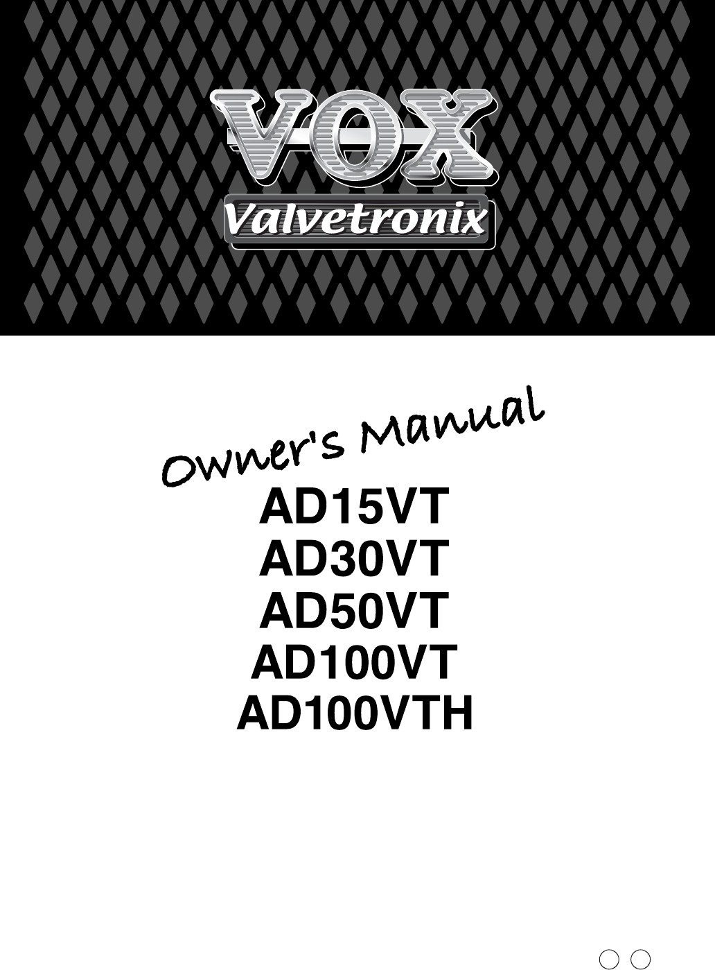 Vox Ad100Vth Users Manual AD15VT/AD30VT/AD50VT/AD100VT/AD10VTH Owner's
