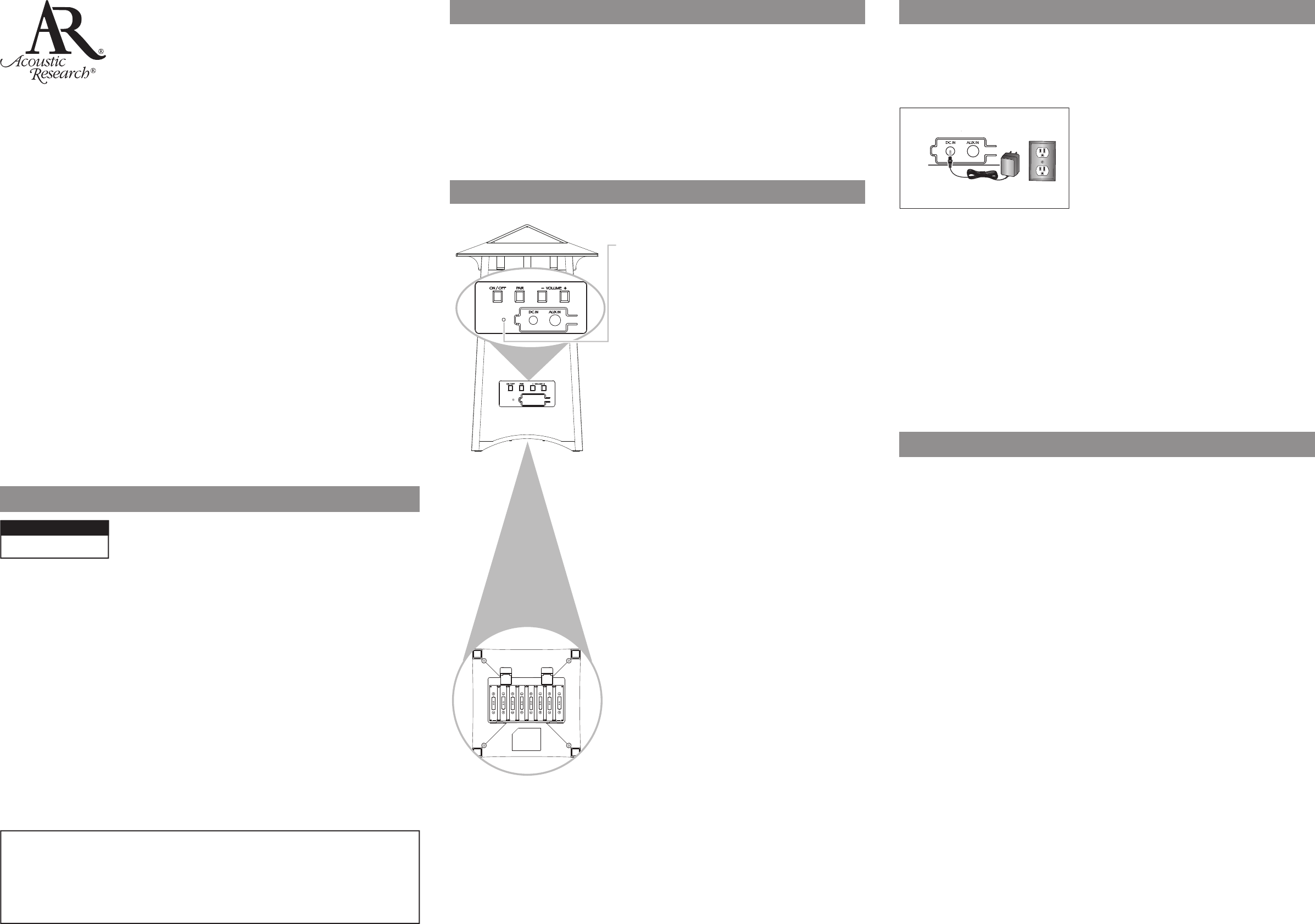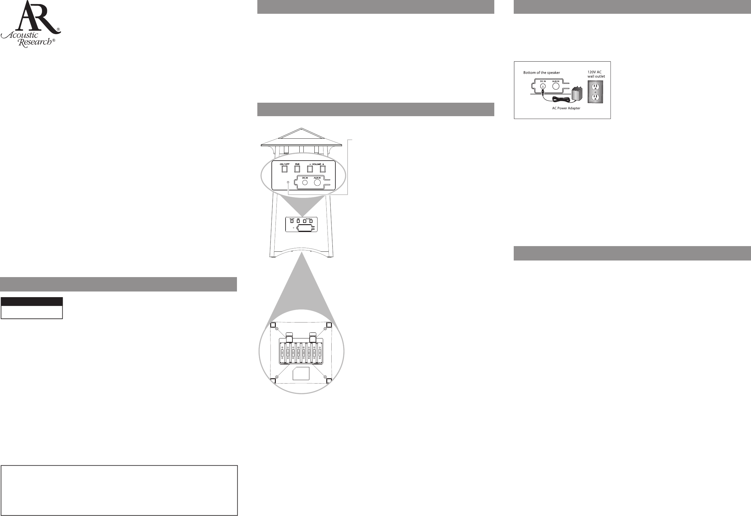 • If the speaker are used outside on a deck or patio, make sure you take them indoors in the event of a rainstorm to