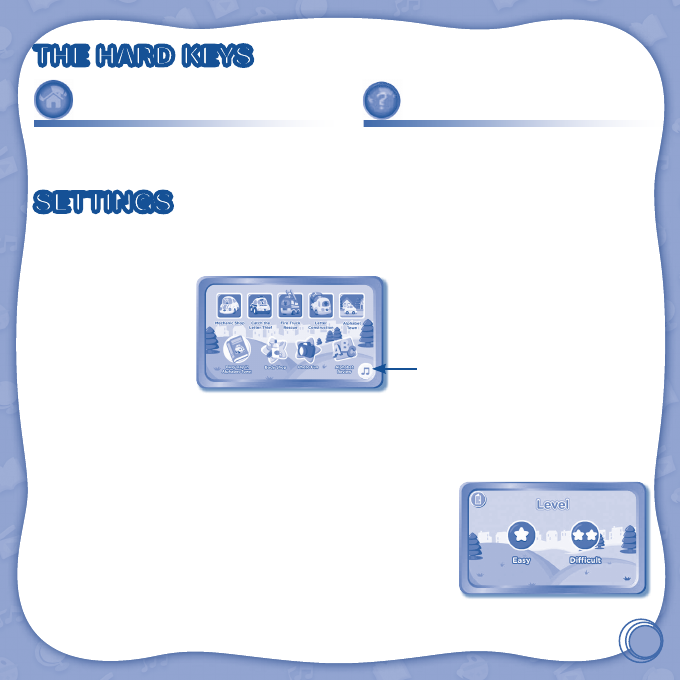 To turn the background music on or off, touch the Music On/Off icon on the cartridge menu.