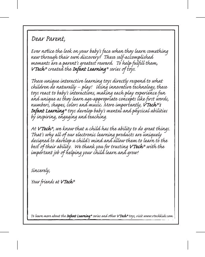 accompanied by a responsibility that we at VTech® take very