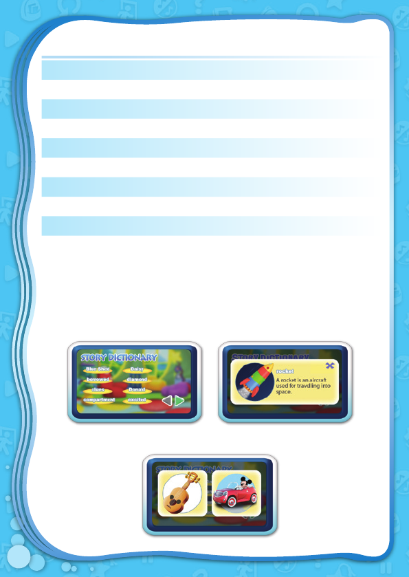 Story Dictionary: Learn the definitions of vocabulary words in the story.